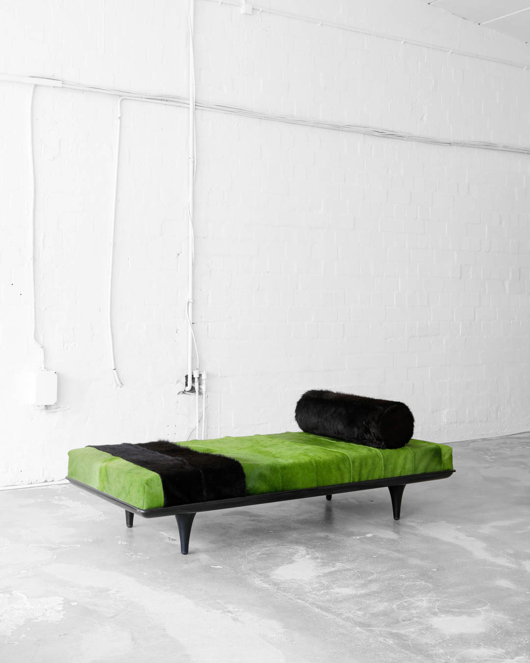 This stunning daybed was designed by Andreas Christen in the 1960s, crafted from a single piece of fiberglass-reinforced polyester with a sleek black finish.
