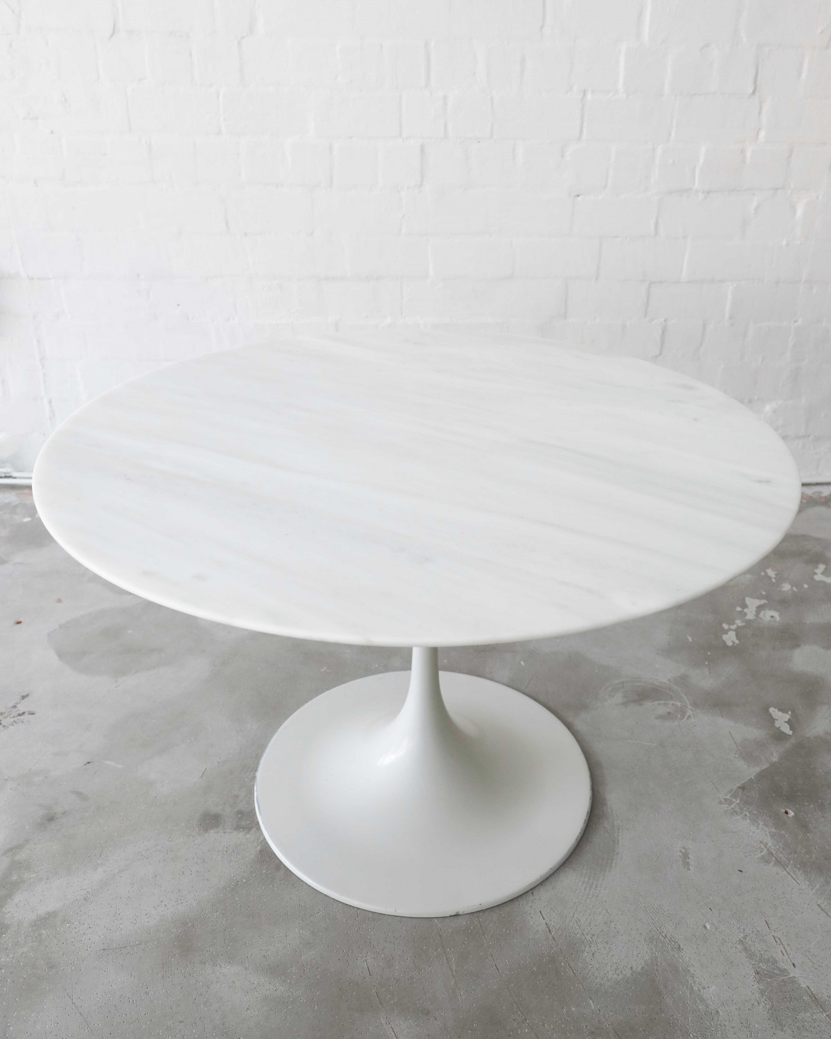 Beautiful tulip table with huge tulip base. White carrara marble with soft light beige venes.