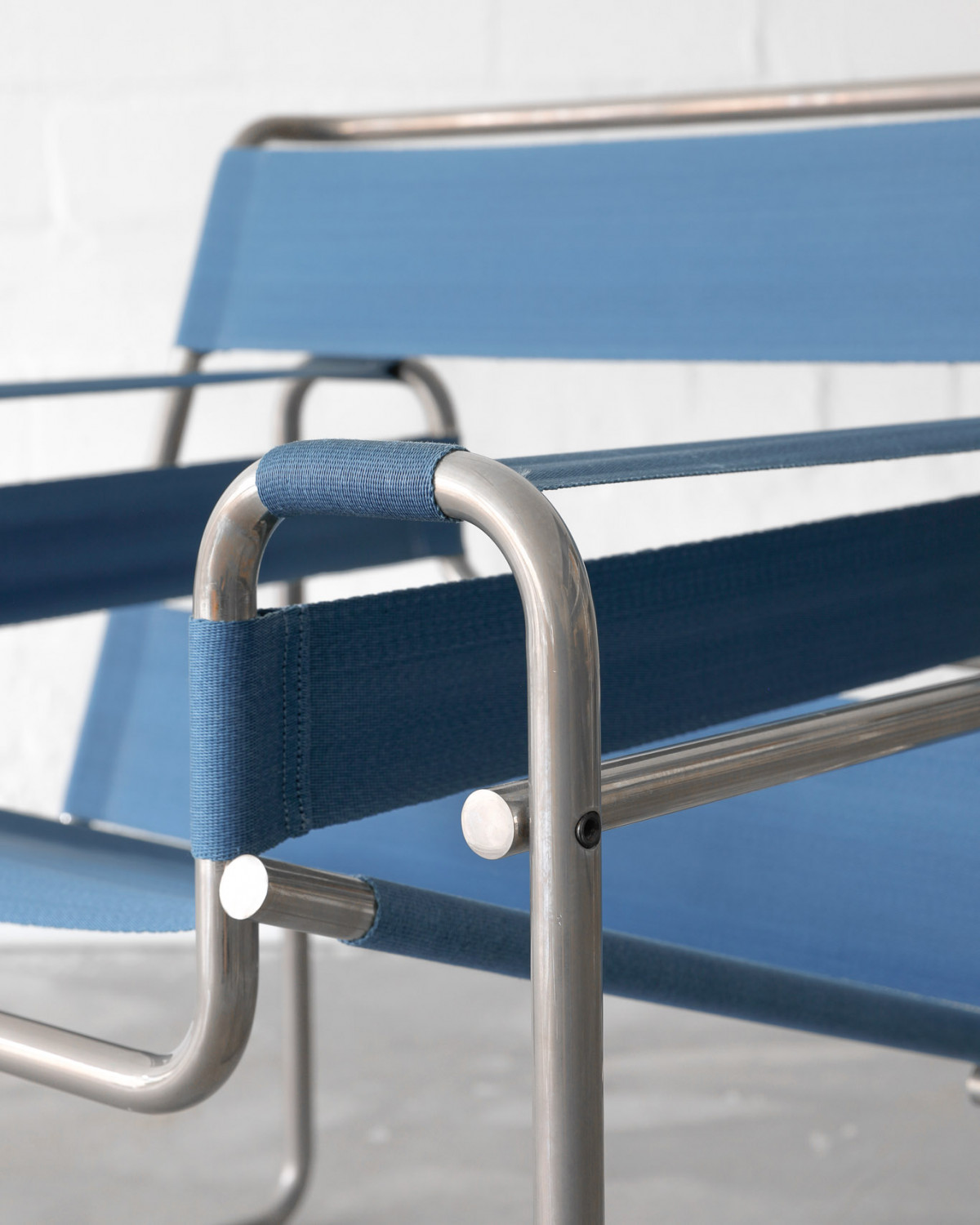 This super rare Wassily Chair is part of a 1996 limited edition (300 pieces), created for the 70th anniversary of Marcel Breuer’s 1920s masterpiece. Featuring iron yarn upholstery and a nickel-plated steel frame, it’s crafted just like the original Bauhaus design. A true collector’s gem!